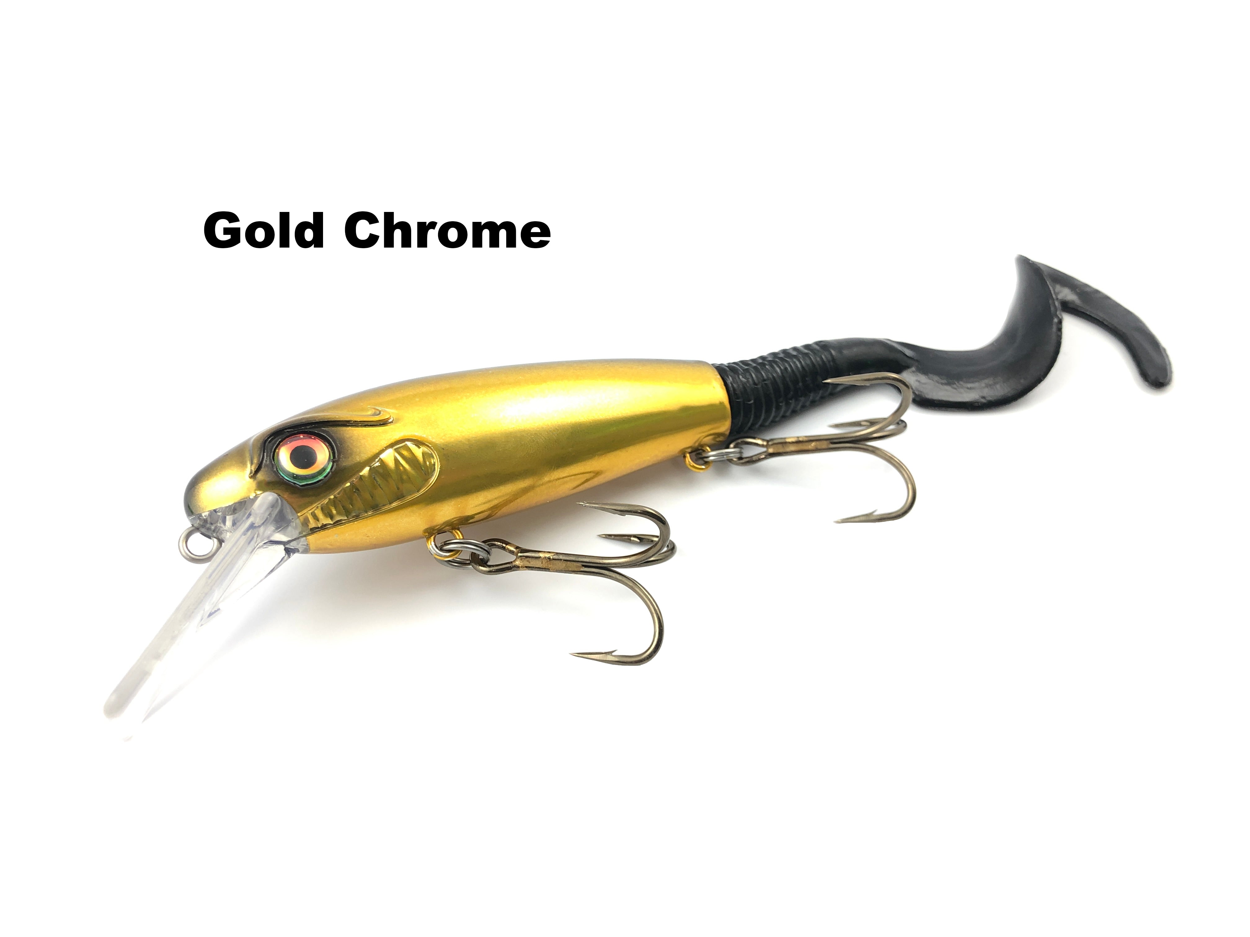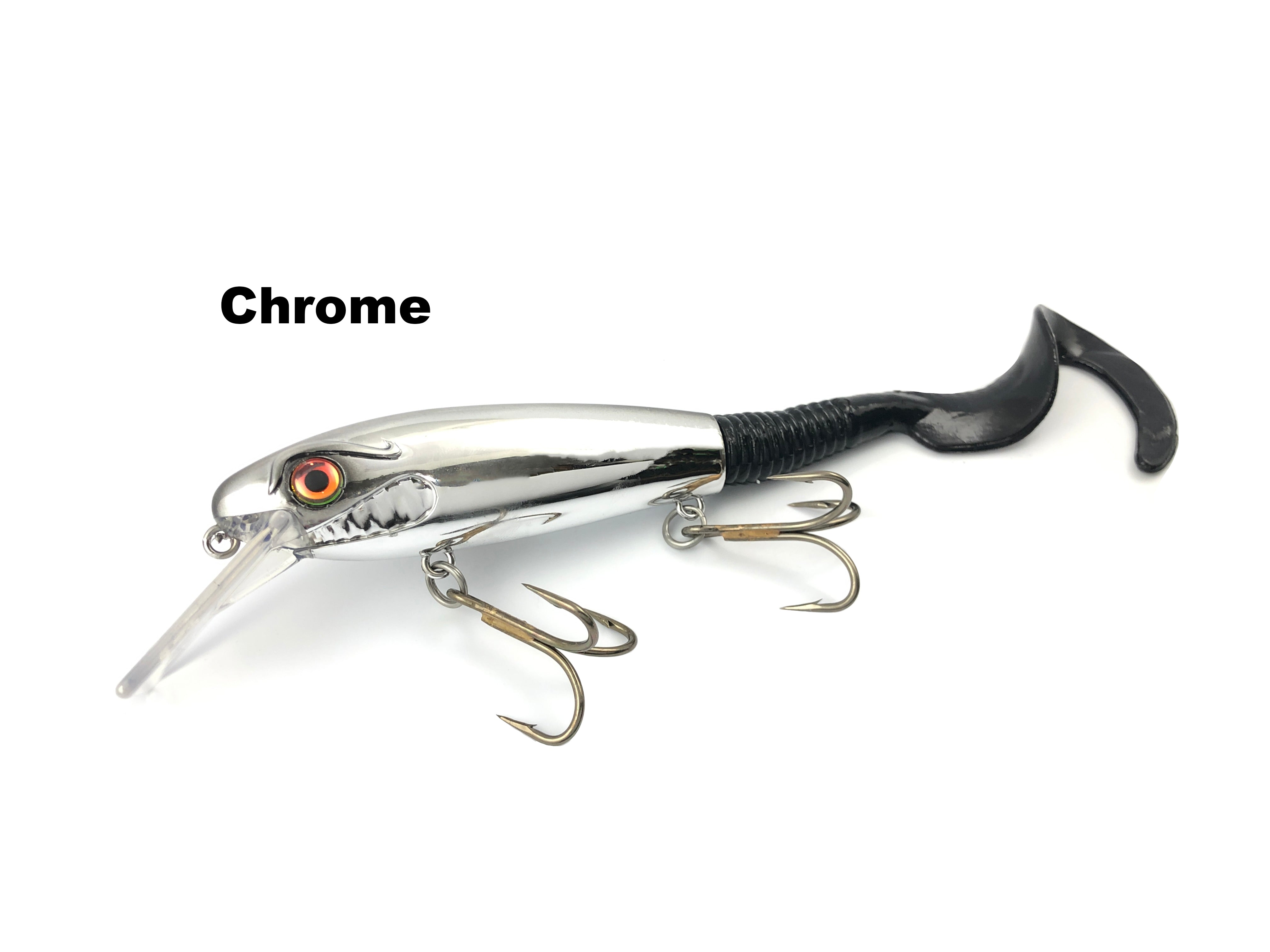 This is the new Havok from Adam's Custom Lures. This musky bait is solid plastic with a subtle deep thumping rattle. The square diving lip gives the Havok a wider wobble than many other lures this size. This bait will dive to 5' on a standard retrieve. This bait is a great casting option but it will also troll to speeds over 4 mph. The Havok is 5" of Hard Body (10" total with tail extended) and weighs 2.2 oz. The Havok has near neutral buoyancy so it will just sit in the face of the fish.