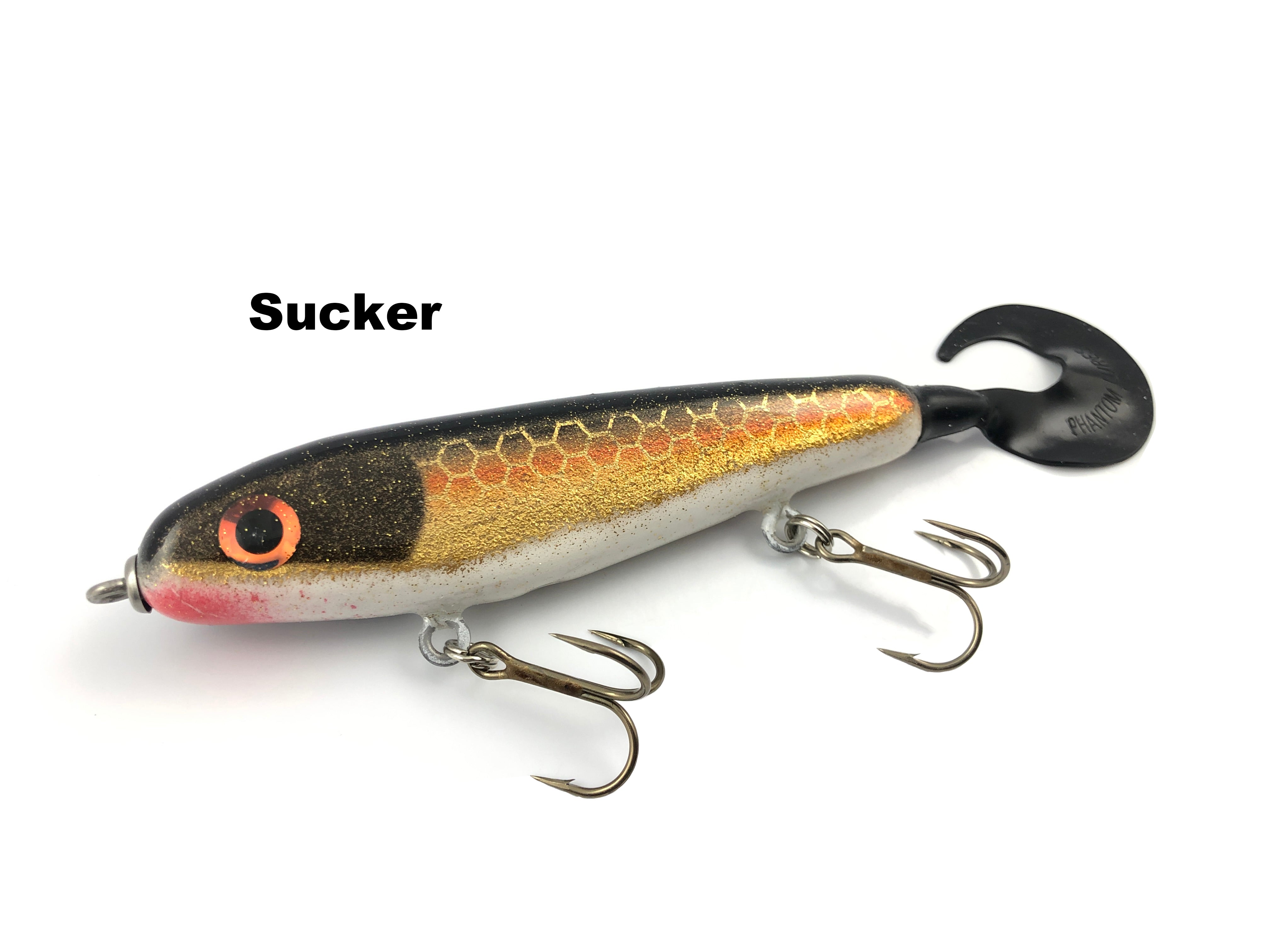 6" long and weighs 3 oz. Super easy to work with very short erratic taps of the rod. This is one bait where less rod movement is actually better for the action. The 6” Phantom will sink slowly on the pause. Soft plastic tail to give you just a bit more action even when the bait is slowly sinking. The 6" Phantom musky lure is available in many TRO exclusive custom colors. See the video attached to get a clear picture of the power of the 6" Phantom. These baits do not have the screw in weight inserts for blanks made after 2020. Please note we try to update the pictures when we notice a change in the tail color but it can vary from what's shown here.
