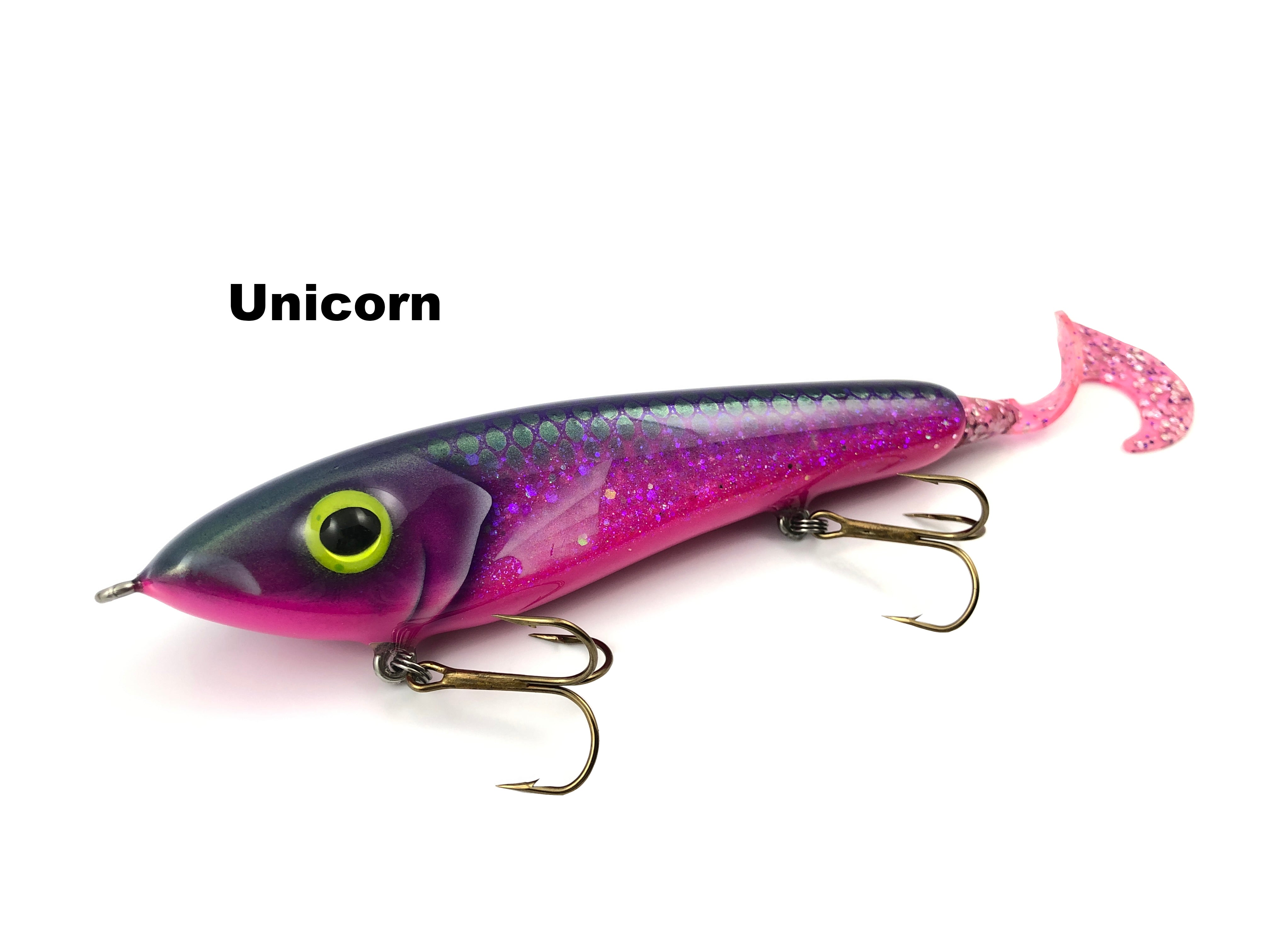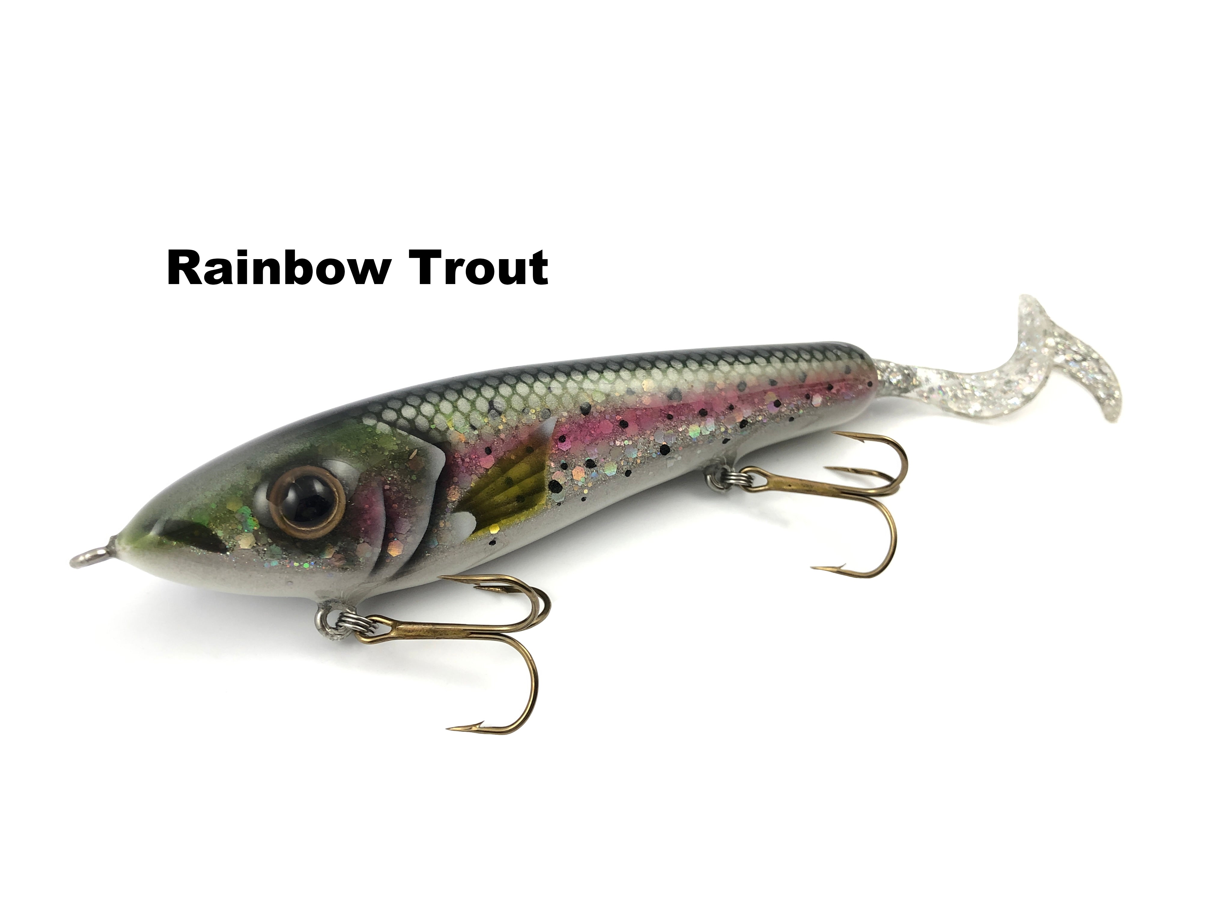 All Rig Boss glides have a great side to side action. These baits are hand made with cedar and soaked in marine grade sealer to insure quality. Each blank is individually weighted and drop tested before any epoxy or paint is applied. Rig Boss baits are built tough with at least 3 layers of epoxy to withstand the punishment of big toothy fish. A solid wire leader is recommended with most side to side glide baits. Economy colors are basic paint, eyes, and less epoxy coating.
