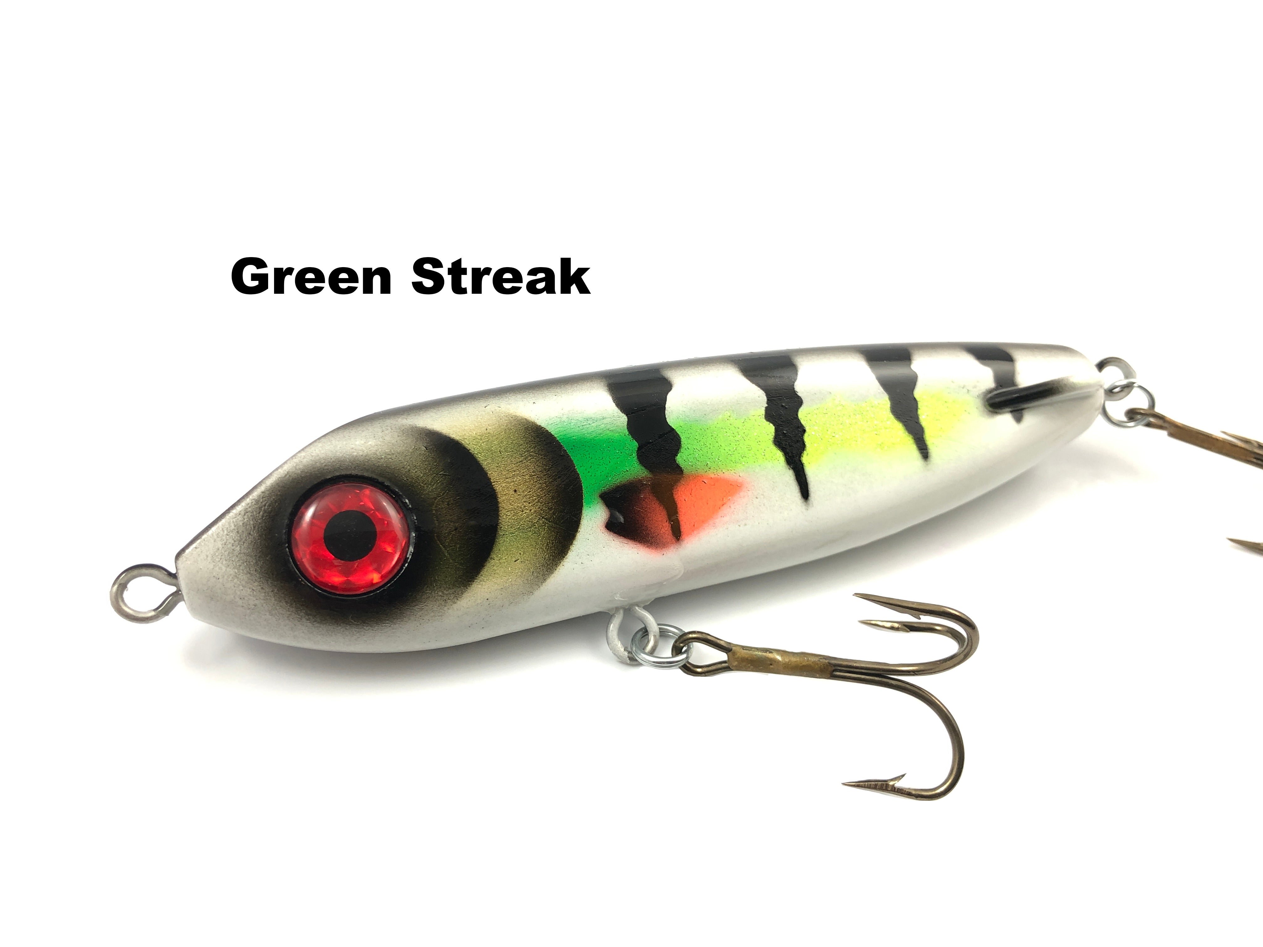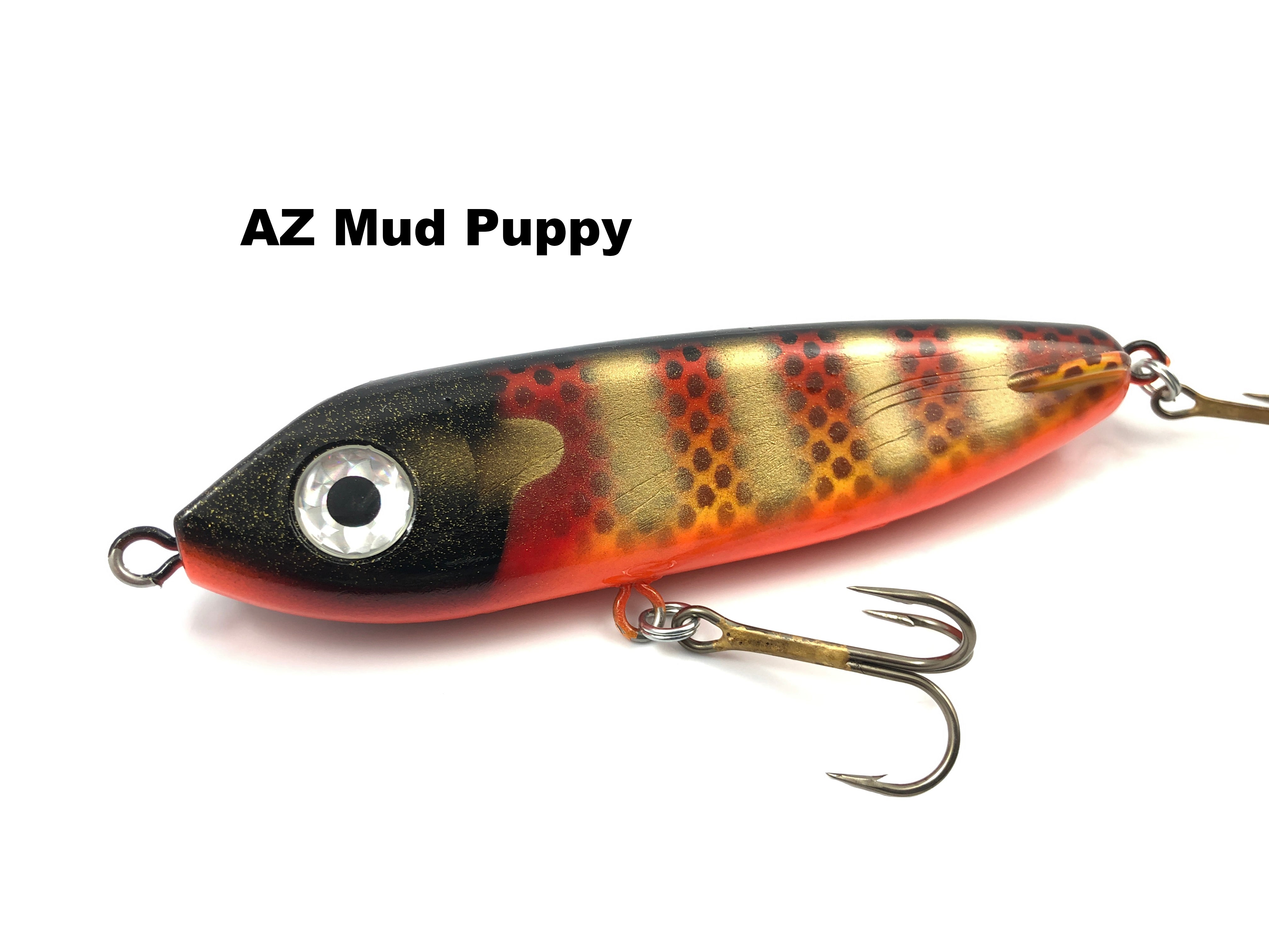 This is the smaller version of the super popular Hell Hound. There isn't a side to side glide bait on the market that is easier to work than the Hell Hound series. Great glide and a triggering wobble on the pause. The Hell Puppy can be worked either fast or slow and is best with just small taps of the rod tip or small turns of the reel. This is a very easy casting bait and perfect for beginning musky anglers. The Hell Puppy is 6 3/4" in length and weighs 3.4 oz. The Hell Puppy musky lure is available in TRO exclusive custom colors.