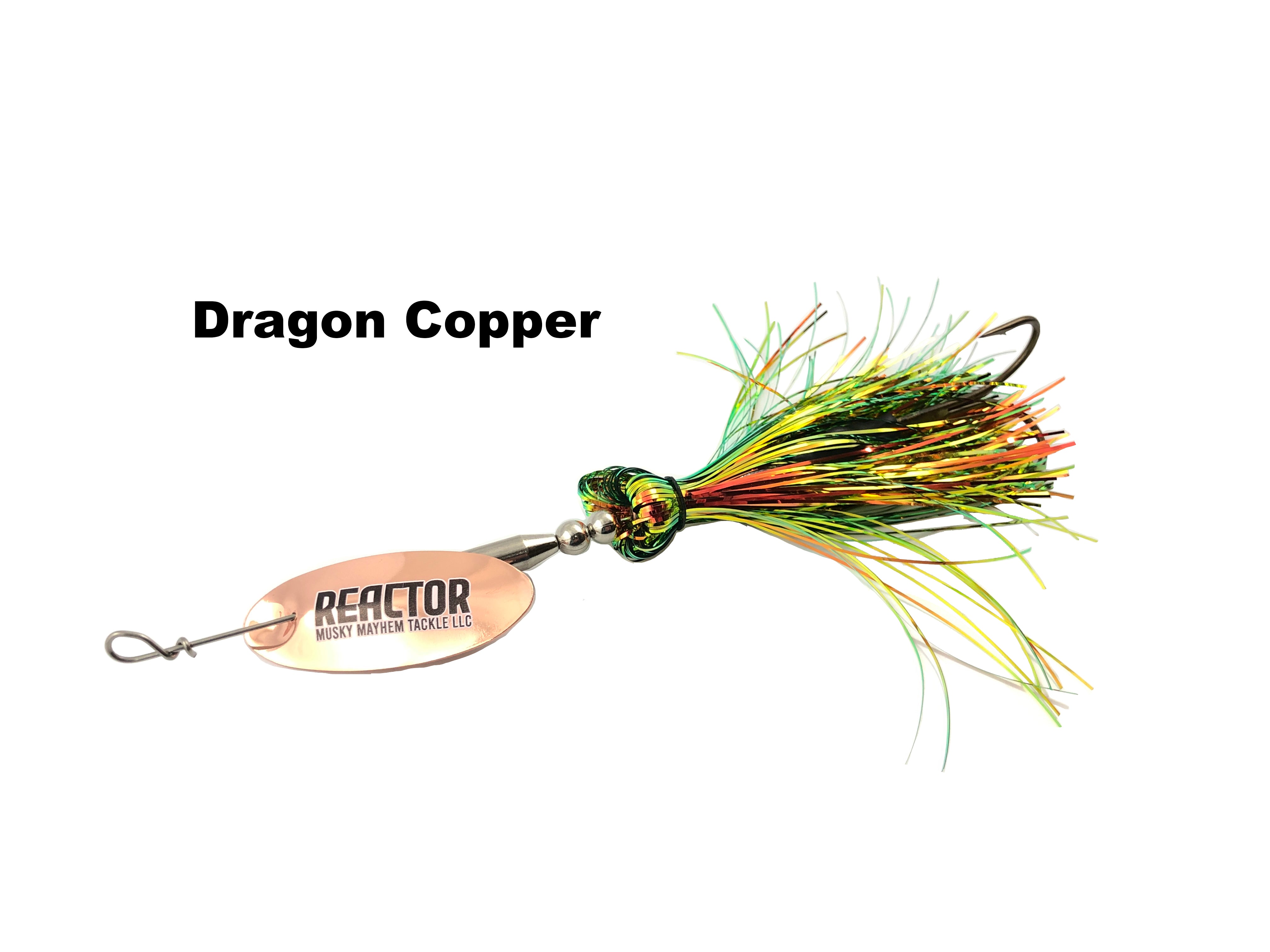 New for 2026 is the Reactor from Musky Mayhem Tackle. This new bait is built with speed in mind. The inline blade and 3/4 oz weight with a 7/0 treble hook make burning a breeze. The inline blade spins close to the shaft and really fast creating a crazy vibration and squeal that really get predator fish to react. The Reactor is 8.5" long and weighs 2 oz