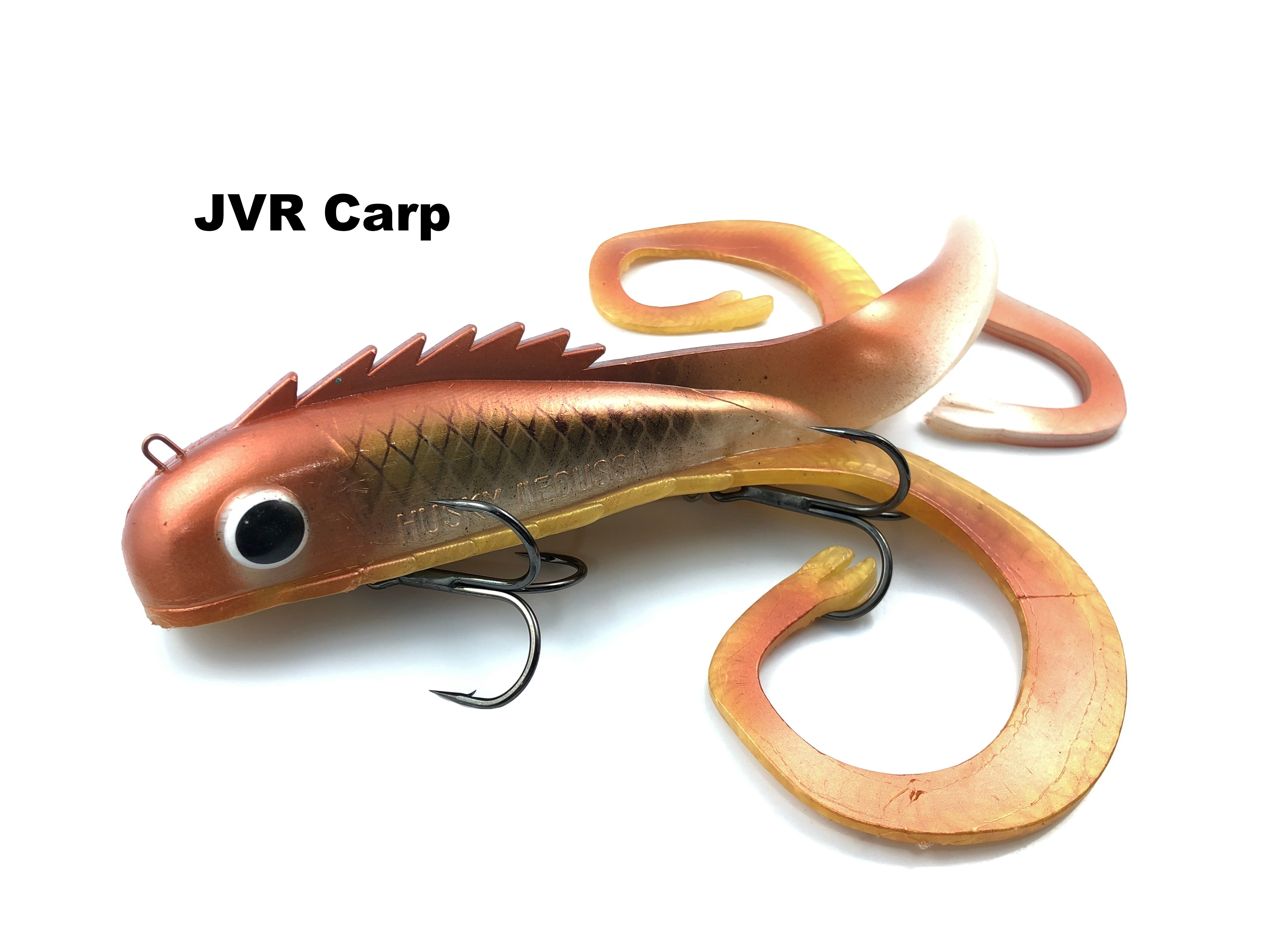 This is the new Husky size Medussa. It weighs 10.4 oz and is 14.5" in length. The perfect size for the angler looking for something bigger than the Regular and not as big as a Monster. This is a great swimbait with 3 lively tails for more vibration. Super durable to hold up to the abuse of many fish. There is no wrong way to work this great custom musky bait. Rip it, Troll it, and Straight retrieve it.