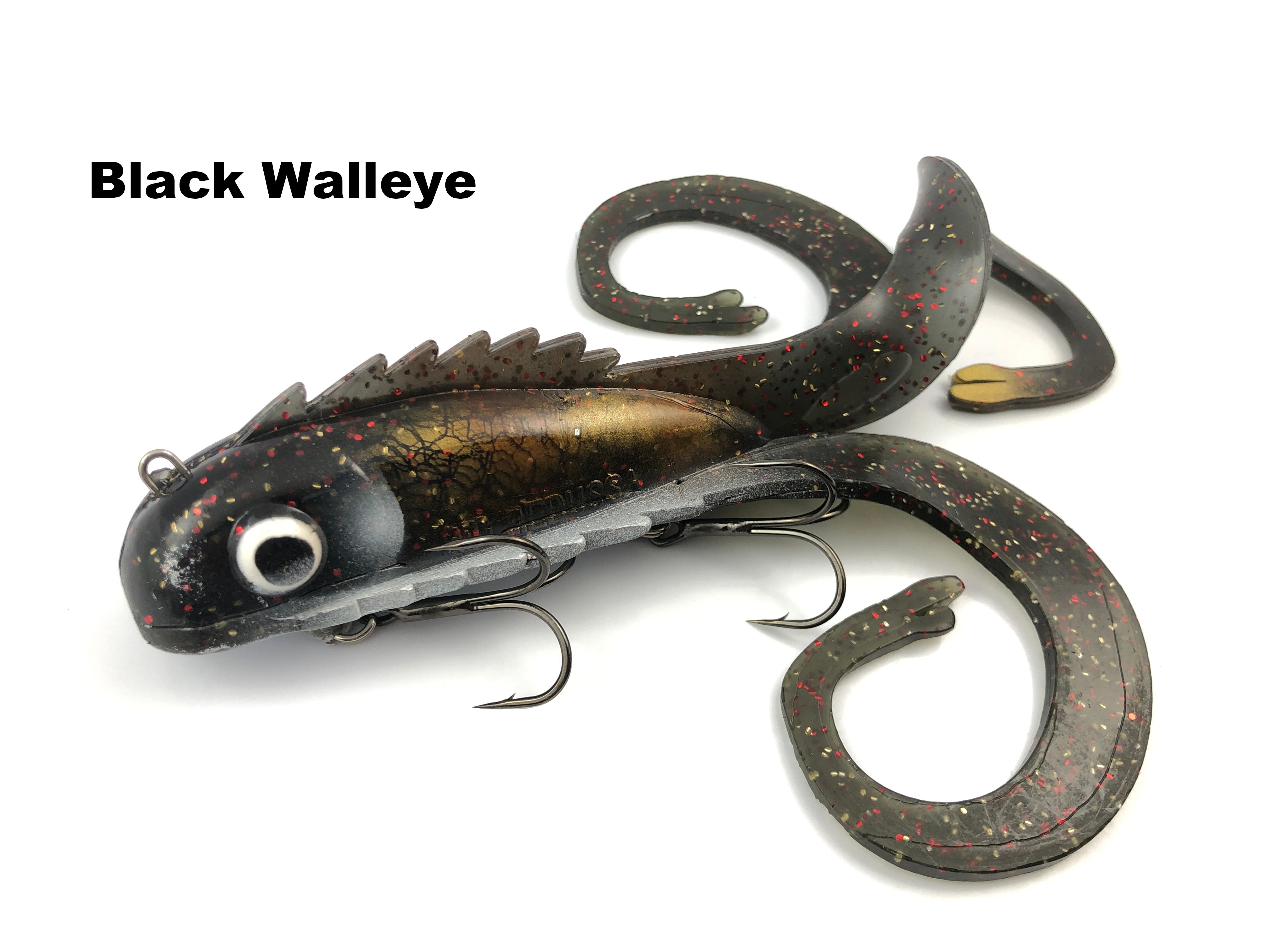 This is the Mid Size Medussa from Chaos Tackle Company. It's 11" long (with tails stretched out) and weighs 4.6 oz. Great for beginners and summer time predator fish. There is no wrong way to fish this bait, as long as the 3 tails are moving it's likely to get eaten. Many anglers use this in many applications including ripping, sweeping, jigging, and trolling it.