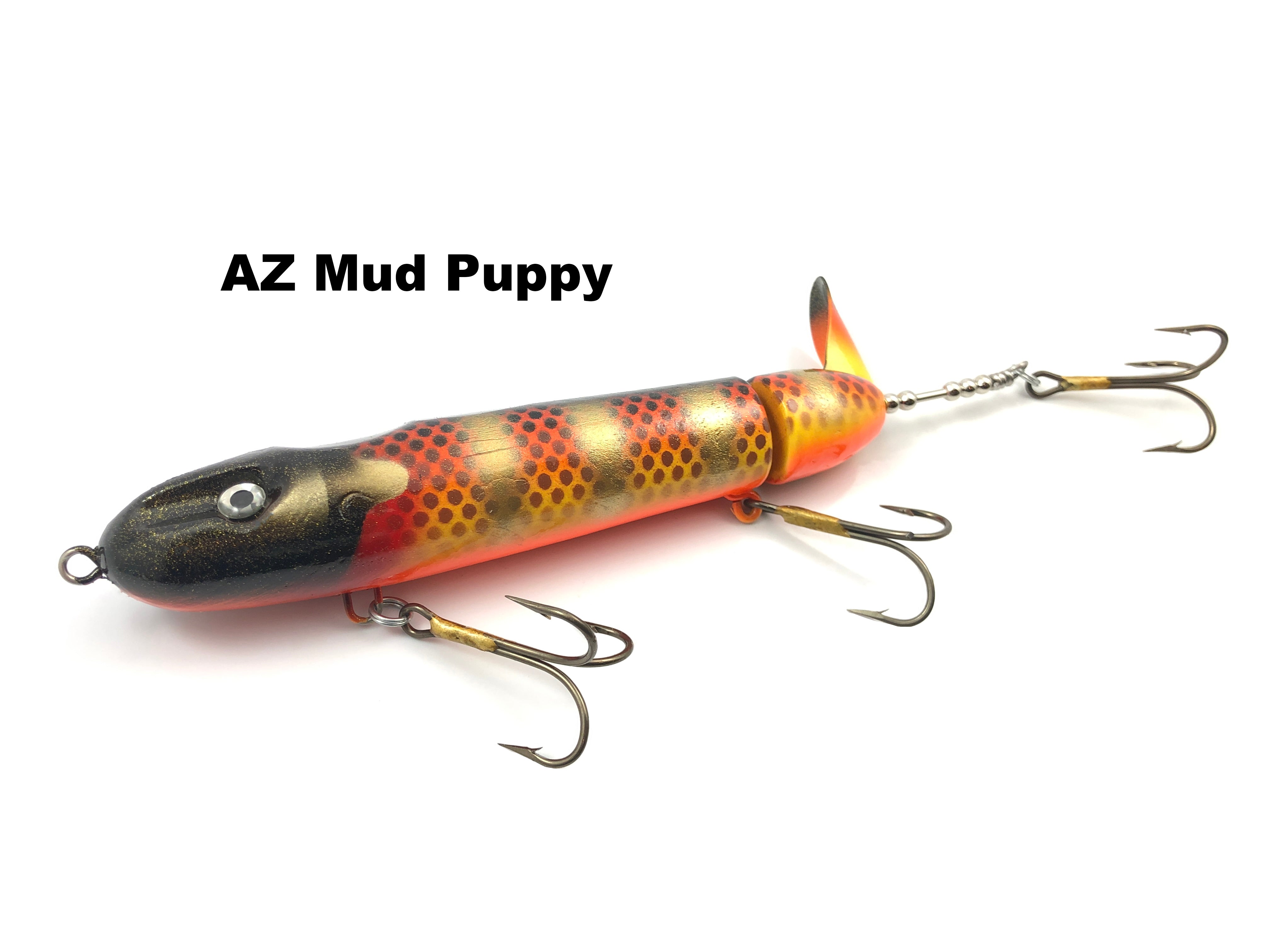 The 7" Pacemaker is a tail rotating top water built like no other. Constructed with solid plastic and heavy duty components. The unique sound that is made from the middle hooking "clicking" against the brass tail is what separates this bait from the pack. This bait is sure to drive the Monster Musky crazy. For best results reel at a steady medium speed. This is a bait used from Summer all the way until ice up. This is the 7" Model and will handle bigger waves better than its little brother. The 7" Pace Maker weighs 3.5 oz. The point of the middle hook is clipped direct from the manufacture, that is not a defect.