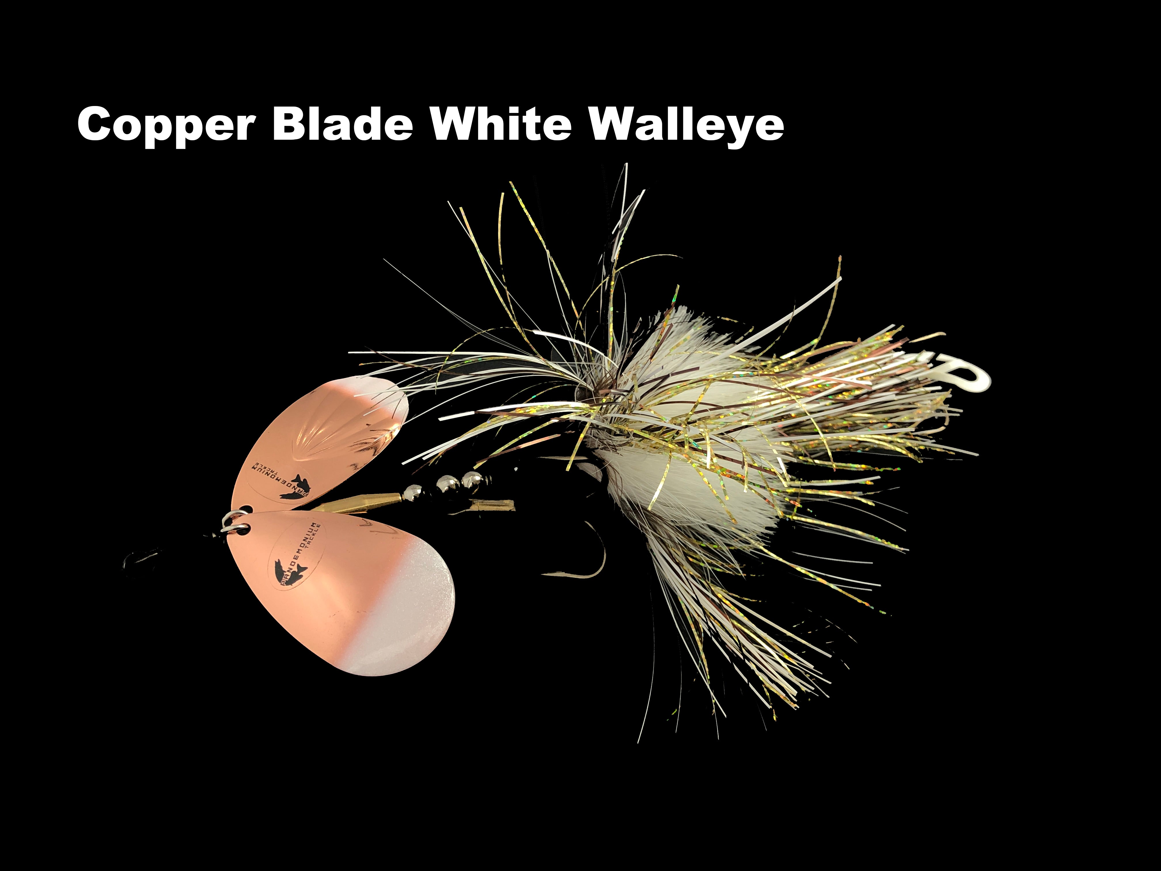 This is a new bucktail from Pandemonium Tackle. The Marvin 88 along with all the other bucktails from Pandemonium feature a flexible wire shaft which will allow the bait to withstand many musky catches. The marabou/flash combo on the skirt really dances in the water. The blades on the Marvin 88 are (1) #9 Colorado and (1) #8 Fluted Indiana for a different vibration. The Marvin 88 is 9 3/4" long and weighs 3.5 oz. The tail streamers may vary from the picture. Some Lots of Marabou may also have a slightly different shade and mix.